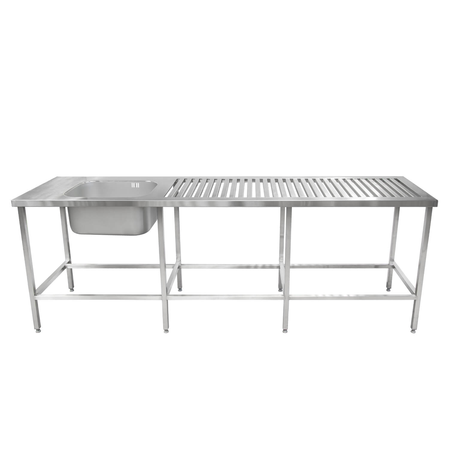 Tämä erikoisvalmisteinen allaspöytä on suunniteltu erityisesti kohteisiin, joissa tarvitaan tehokasta vedenpoistoa ja ilmanvaihtoa työskentelytasolla. Koko pöytätaso on ritiläsäleikköä, mikä tekee siitä ihanteellisen esimerkiksi elintarvike-, suurkeittiö- ja teollisuuskäyttöön, missä hygieenisyys ja käytännöllisyys ovat ensisijaisia.