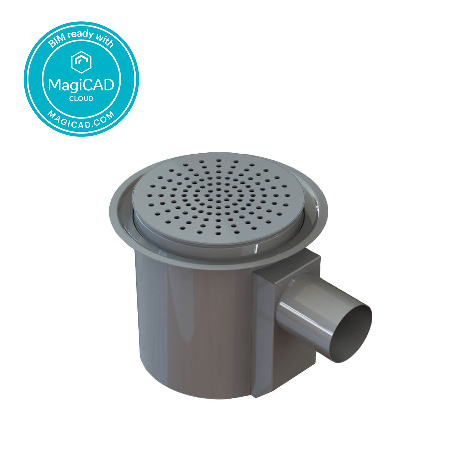 Vakiotoimitukseen kuuluu kaivo sekä lattian pintamateriaalin mukainen sovite vesierityslaippoineen, irrotettava sakka-astia ja sihtikansi.